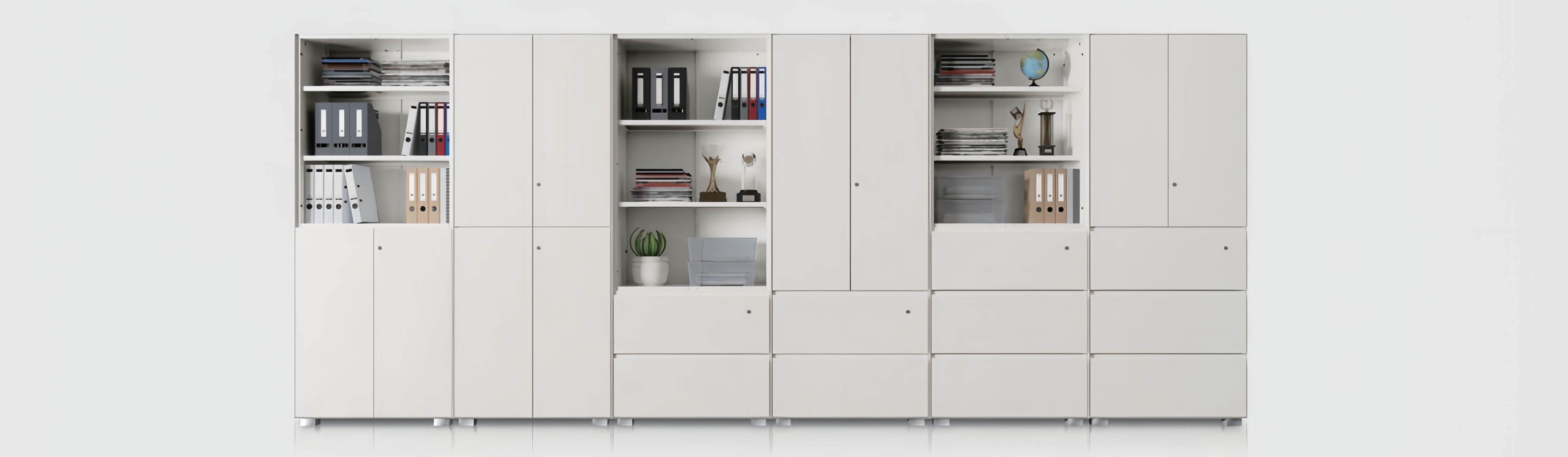 Gabinete de almacenamiento de metal de acero y hierro con puerta abatible, archivador de oficina con puertas batientes, archivador de cinco secciones